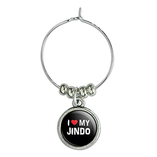 -. Brand : Graphics and More -. Feature : Unique and functional super awesome drinking glass charm / Includes the resin encased design on both sides of the 15mm metal charm / Approximate size of charm is 15mm / Sold individually / Created by Graphics and More in the USA -. Label : Graphics and More -. Manufacturer : Graphics and More -. ProductGroup : Kitchen -. ProductTypeName : KITCHEN -. Publisher : Graphics and More -. Studio : Graphics and More -. Title : Wine Glass Charm Drink Marker I Love My Dog E-K