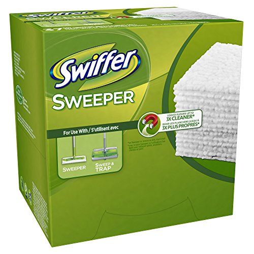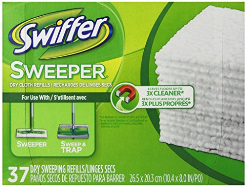 Product Description Swiffer Sweeper dry sweeping cloth refills have thick dirt-grabbing ridges and grooves to clean floors. Dry cloth refills leave your floors up to 3X cleaner than a broom on dirt, dust and hair. Works on Swiffer Sweeper, Swiffer SweeperVac and Swiffer Sweep and trap. 0