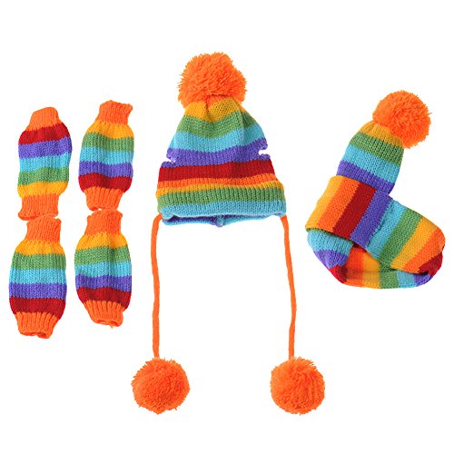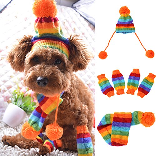 -. Title : JJ Store Puppy Pet Dog Cat Winter Striped Hat Knitted Cap Socks Scarf Leg Warmers Rainbow Pink