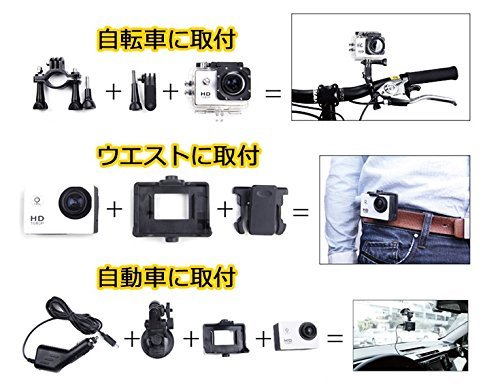 ● 高画質1080P防水多機能スポーツカメラ ● バイクや自転車、カートや車に取り付け可能なスポーツカメラ