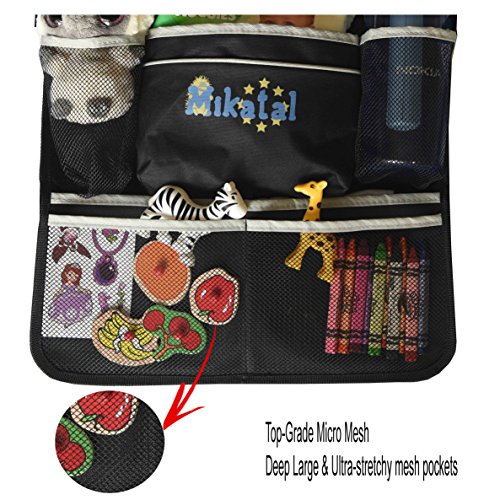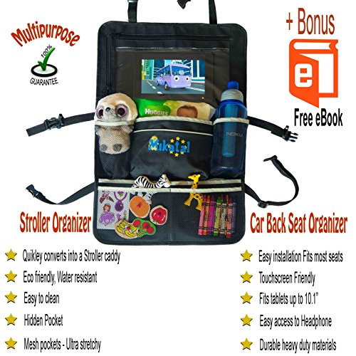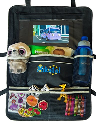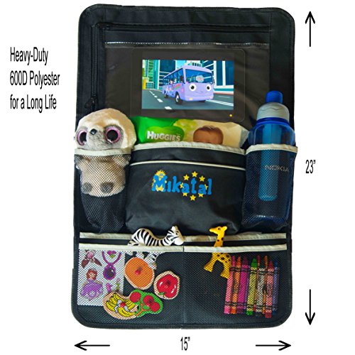-. Binding : Baby Product -. Brand : Mikatal -. Color : Black -. EAN : 0643131921617 -. Feature : • COMPLETE CAR / STROLLER ORGANIZER- MIKATAL BACK SEAT ORGANIZER is the answer to keeping your vehicle clean; works great for babies and children as it protects your automobile or stroller; long black hanging organizer comes with a clear pouch that fits most full-size tablets such as the Galaxy or Surface for hands-free viewing of movies and more; zippered side pocket provides convenient access to headphone jack, charger port, et cetera; / • UNIVERSAL DESIGN: The MIKATAL BACK SEAT ORGANIZER is optimized with eight spacious pockets plus a hidden pocket; it fits toys, wet wipes, bottled water, sippy cups, coloring books, pacifiers, toys, diapers, and many of the other essentials parents needs; fold over at the side straps to use on a stroller; perfect for family vacations, park, or everyday use; dimensions twenty-three inches tall and fifteen inches wide; / • EASY TO INSTALL, EASY TO CLEAN: Our adjustable strap with quick-release buckle is nearly twelve inches longer than other brands, allowing the MIKATAL BACK SEAT ORGANIZER to fit most vehicles and strollers in stroller mode; waterproof and eco-friendly; since it is made of a polyester backing with top-grade, stretchy mesh pockets, plastic buckles, and quality zippers, it is simple to clean with a damp cloth and air dry; / • ADDED BONUSES: In each shipment of the MIKATAL BACK SEAT ORGANIZER, there is an enclosed card for a FREE downloadable Ebook link of "Twenty-Five Terrific Travel Activities for Kids" as well as a box of six colored pencils for your children to enjoy when traveling or at home; / • MONEY BACK SATISFACTION GUARANTEE: We strive to provide you with the highest quality product and the best customer experience possible; our organizer comes fully backed with a replacement or refund guarantee; if you're not entirely satisfied, we offer a swift and full refund; click Add To Cart now and enjoy a risk-free purchase of the MIKATAL BACK SEAT ORGANIZER -. IsAdultProduct : 0 -. Label : Mikatal -. Manufacturer : Mikatal -. MPN : 6549317 -. PackageQuantity : 1 -. PartNumber : 6549317 -. ProductGroup : Baby Product -. ProductTypeName : BABY_PRODUCT -. Publisher : Mikatal -. Studio : Mikatal -. Title : Mikatal Car Back Seat Organizer With Touch Screen Pocket Tablet Holder - Multipurpose Seat Protector, Kick Mat and stroller bag - Ideal For Traveling With Children- Black +BONUS Color pencils -. UPC : 643131921617