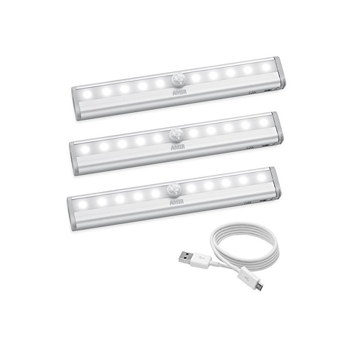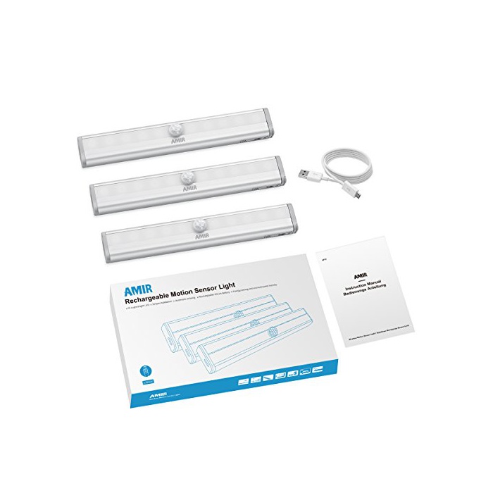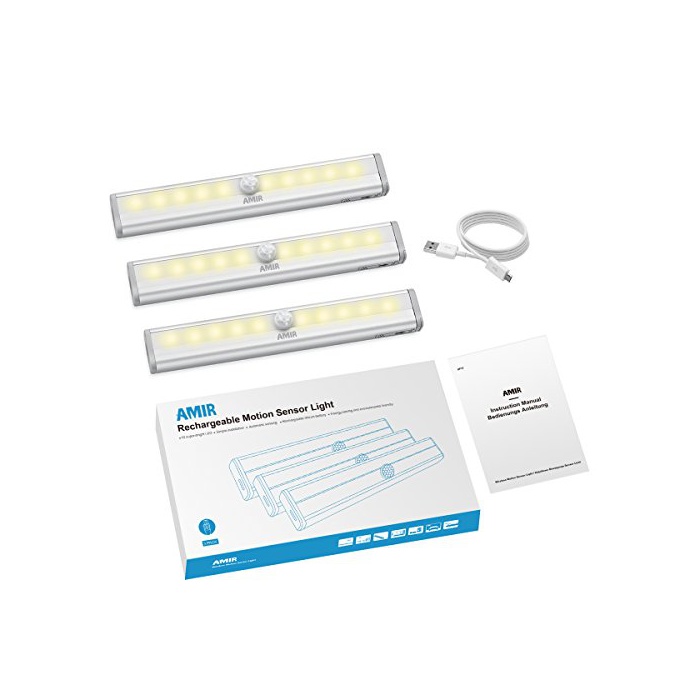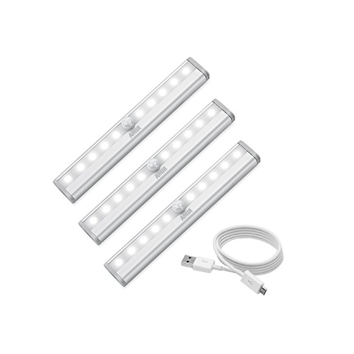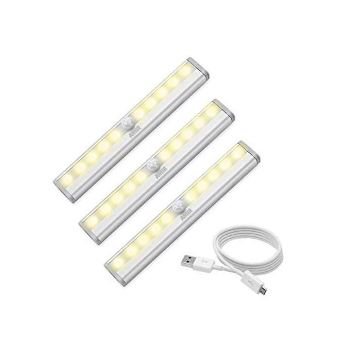 AMIR 키친 라이트 LED센서 라이트 USB충전식 인감센서 라이트 10 개LED전구 오름 휘도 에너지 절약 초수명 wireless 마그넷 부착 계단 closet 현관에 최적