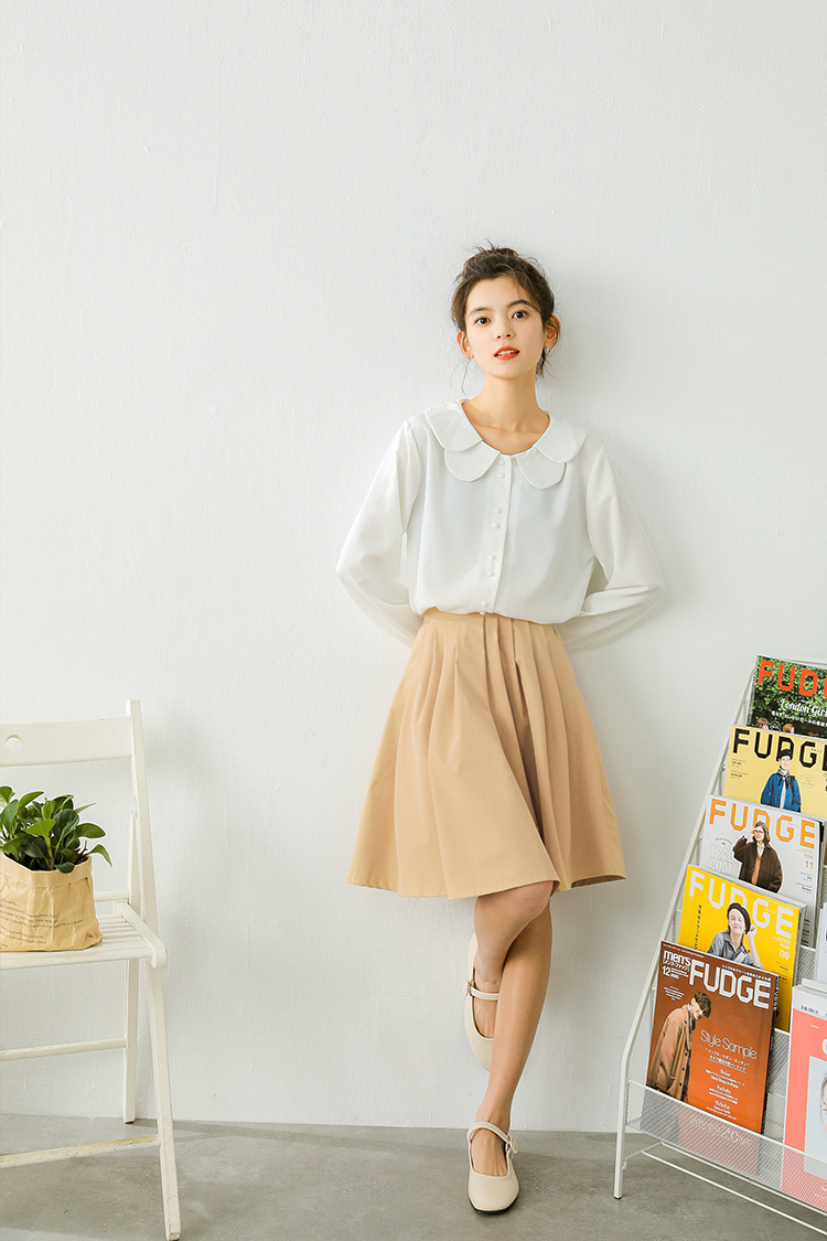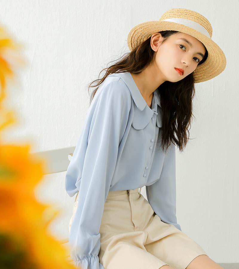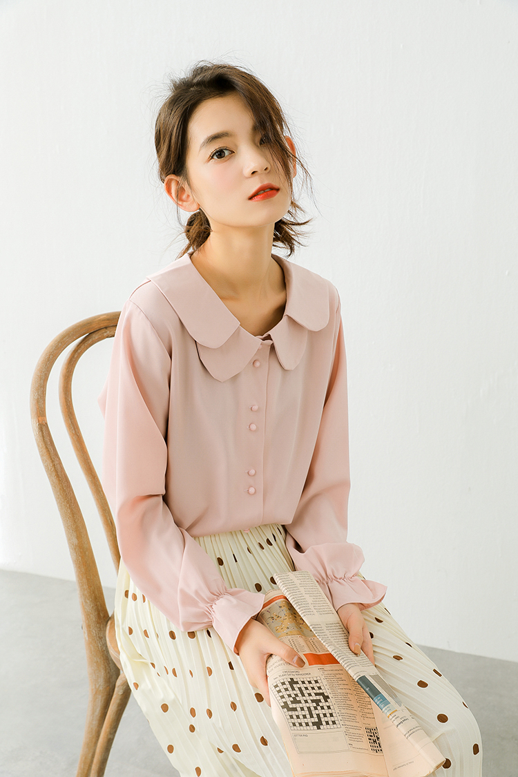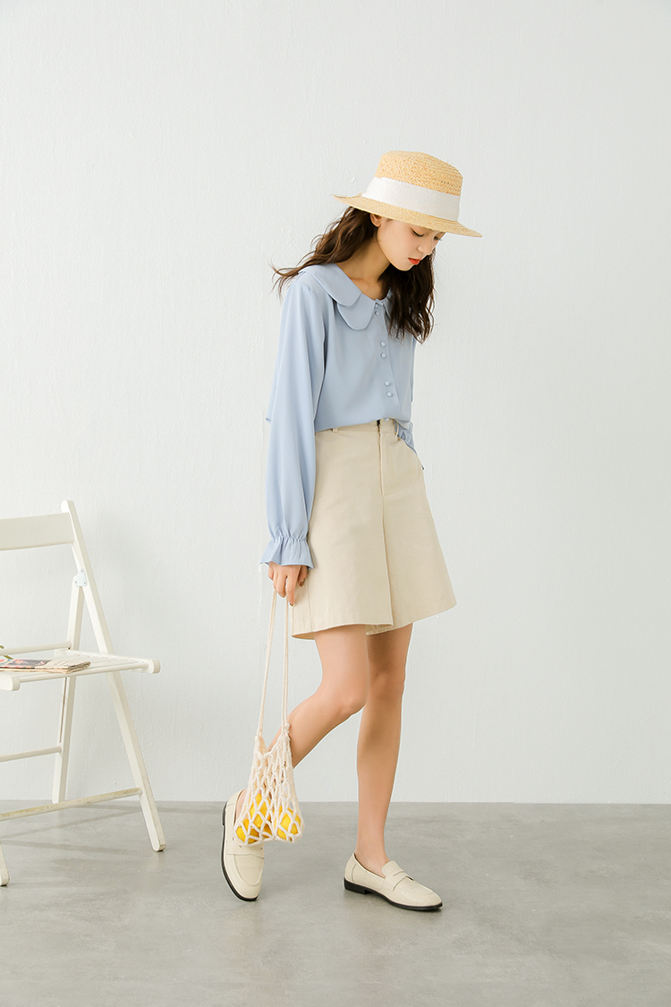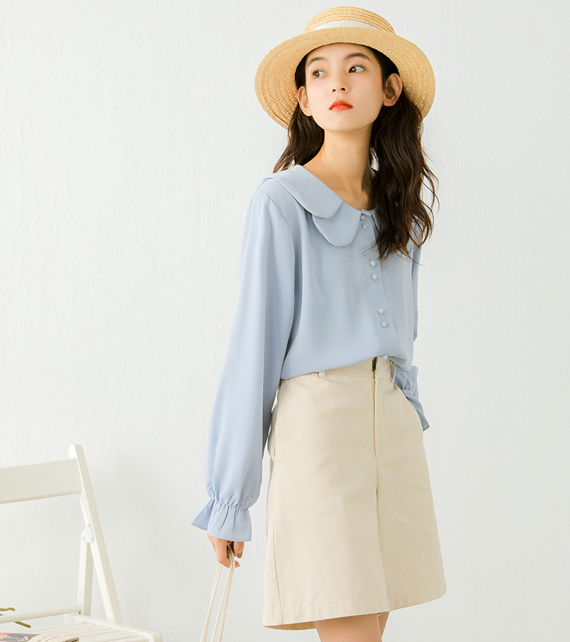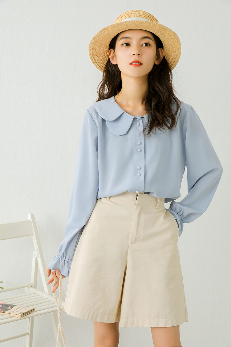 1枚着ではもちろん、ニットやカーディガンに合わせても可愛く決まるブラウスです♪