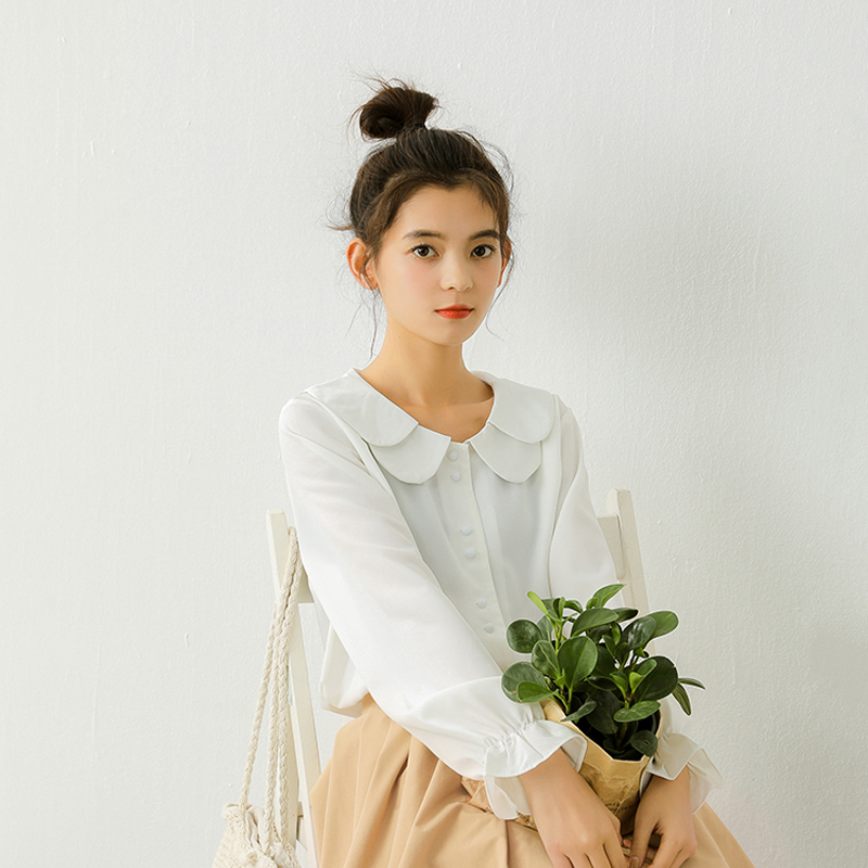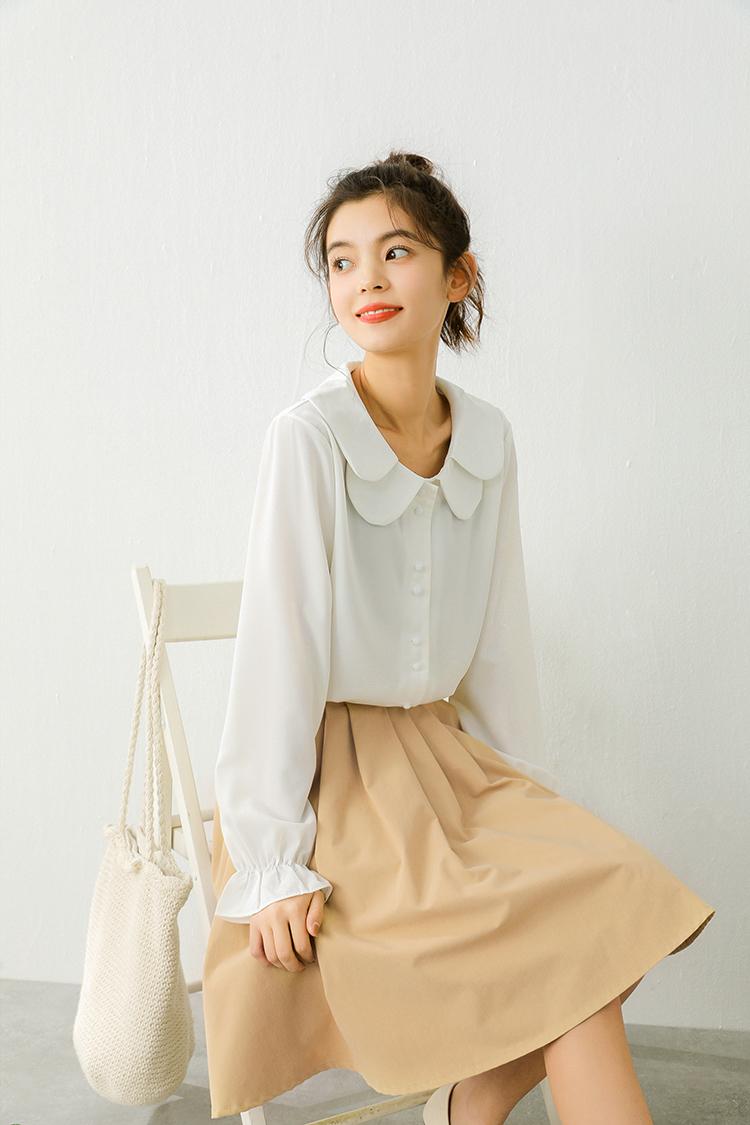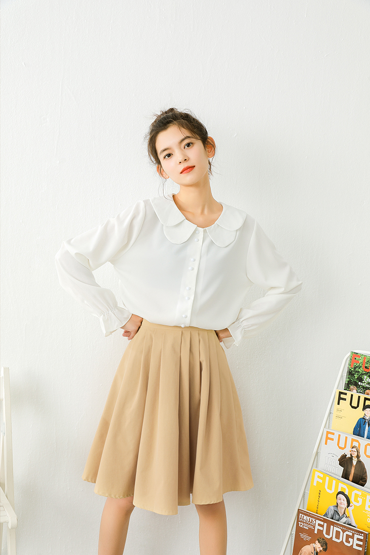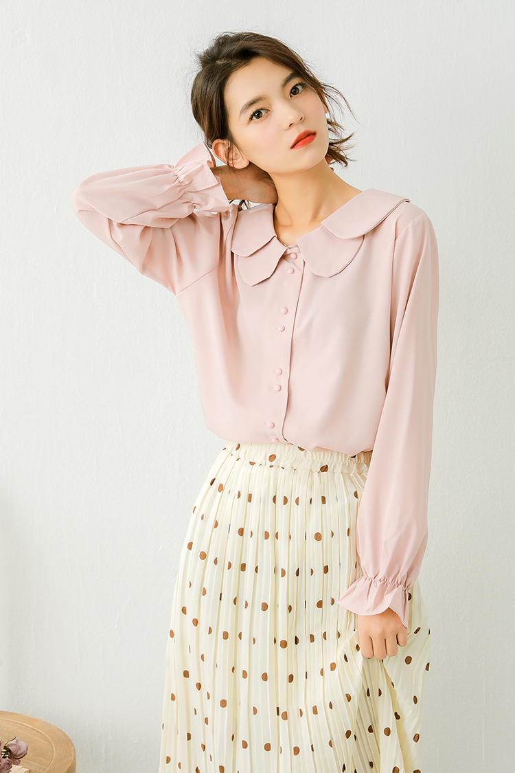 丸襟を花びらの様に重ねたキュートなディテールがポイント。