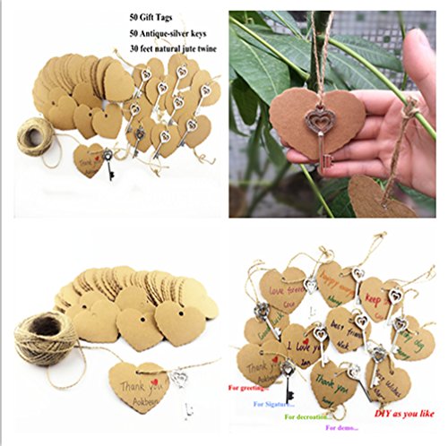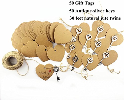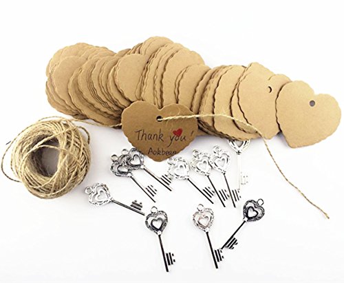- Package Include;50pcs tags,+50pcs Silver Keys+30 feet Jute Twine in Aokbean brand package