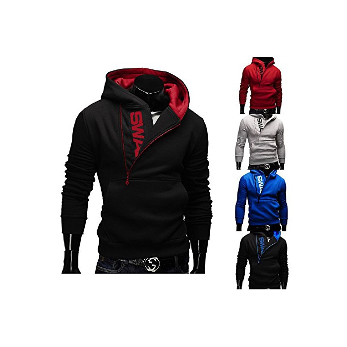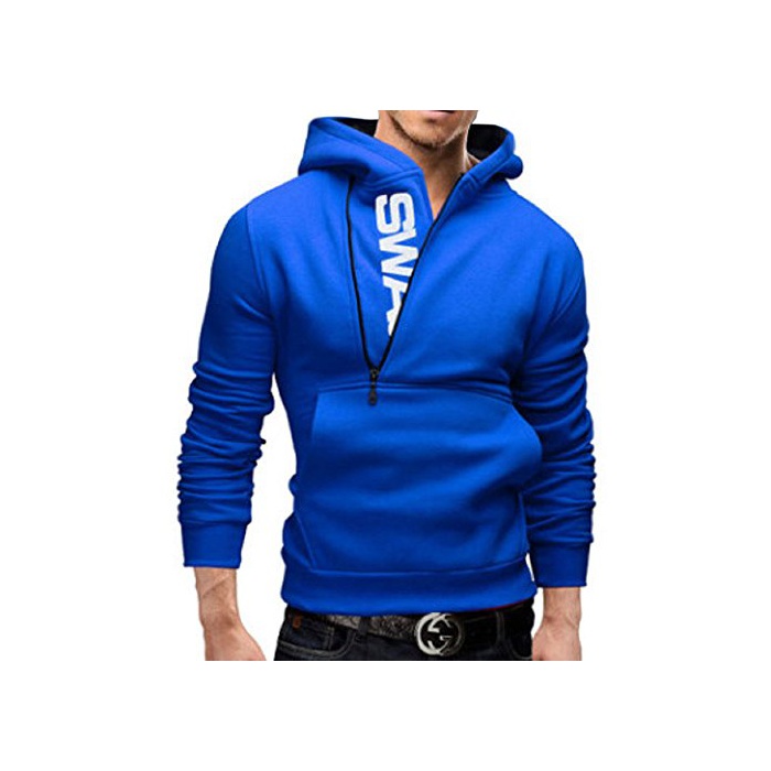 Smile lala 【Smile LaLa】 맨즈 파커 스웨트 트레이너 로고 심플 캐주얼 긴 소매 블랙 블루 그레이 레드 (3XL,블루)