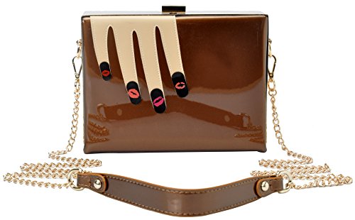 (Vendula London)/Accessories/Handbags/DIRECT FROM USA/Vendula London Women Designer Handbags Ladies Lips Nail Art Clutch - Brown