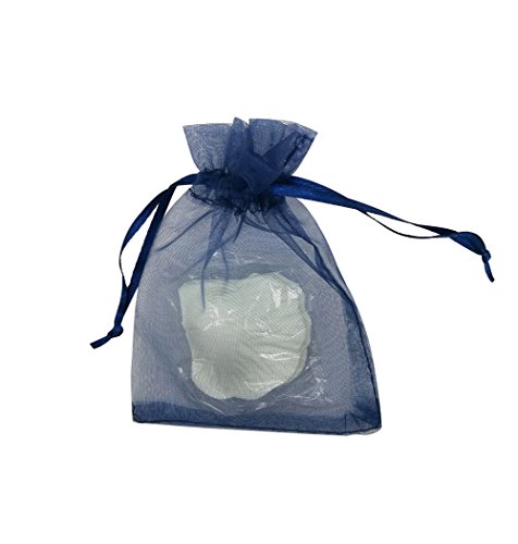SUNGULF 100Pcs Sheer Organza Drawstring Pouches Wedding Gift Bags 3x4 Inches (Navy Blue)