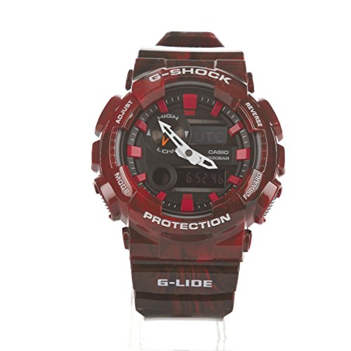 -. Binding : Watch -. Brand : Casio -. Department : Mens -. EAN : 0889232122618 -. Feature : Case, bezel, and band are resin Shock Resistant Magnetic Resistant Mineral Glass 200 Meter Water Resistant Auto LED Light w/ Afterglow in Amber World Time (29 Time Zones) 2 Multi-Function Alarms Moon Data Tide Graph Thermometer 1/100th Stopwatch Countdown Timer 5 Daily Alarms Hourly Time Signal Timer Full Auto Calendar 12/24 Hour Format Quartz Battery Movement Digital G Shock Tough Comes in Original Box, Tin Can w/ Warranty 55 x 51.2 x 16.9 mm -. Label : Casio -. Manufacturer : Casio -. MPN : GAX-100MB-4A -. PackageQuantity : 1 -. PartNumber : GAX-100MB-4A -. ProductGroup : Watch -. ProductTypeName : WATCH -. Publisher : Casio -. Studio : Casio -. Title : Casio G-Shock NEW! GAX-100MB-4A G-Lide Red Watch -. UPC : 889232122618