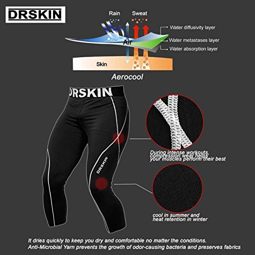 -. Binding : Apparel -. Brand : DRSKIN -. Department : mens -. Feature : Fabric-Aerocool- Water Diffusivity laer/Water metastases layer/Water absorption layer / Great for skiing, snowboarding, training, competing, and all weather sports and activities / Moisture Sensing/Quick time Dry/TWC-WAY Air Circulatio / Cool in Summer and heat retention in winte / UV BLOCKING 98.8% -. PackageQuantity : 1 -. ProductGroup : Apparel -. ProductTypeName : PANTS -. Title : [DRSKIN] Tight 3/4 Compression Pants Base Layer Running Pants Men Women