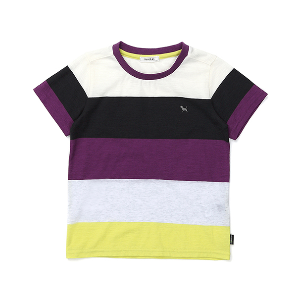 새로운 컬러감들이 서로 조화를 이루는 컬러블럭 반팔 티셔츠입니다.