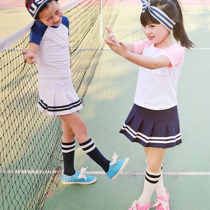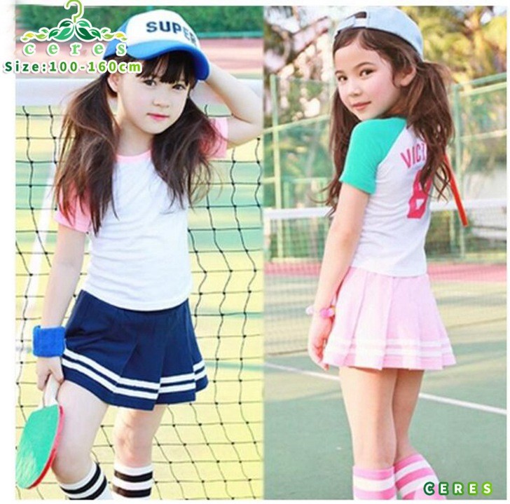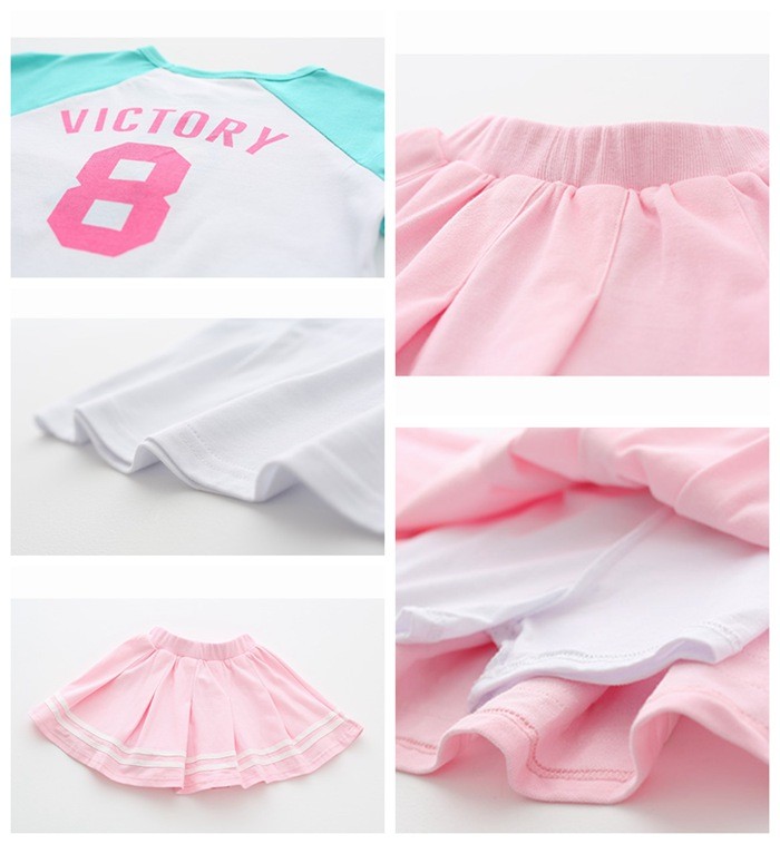 【製品仕様】■商品説明・上下セットでおしゃれに着こなす!~・学院風、フレアスカートでとても可愛いデザイン!~♪・お出かけにぴったり!■サイズ/寸法平置採寸トップス【100】バスト:30cm 総丈:39cm【110】バスト:31cm 総丈:42cm【120】バスト:33cm 総丈:44cm 【130】バスト:34cm 総丈:46cm【140】バスト:36cm 総丈:48cm【150】バスト:39cm 総丈:53cm【160】バスト:41cm 総丈:56cmボトムス【100】ウェスト:20cm 総丈:24cm【110】ウェスト:21cm 総丈:24cm【120】ウェスト:22cm 総丈:25cm【130】ウェスト:24cm 総丈:27cm【140】ウェスト:25cm 総丈:29cm【150】ウェスト:27cm 総丈:36cm【160】ウェスト:28cm 総丈:40cm■素材/材質コットン ポリウレタン■色ピンク/ブルー/グリーン