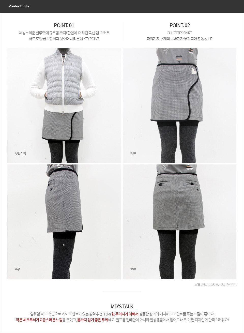 01. 체크 패턴과 곡선 랩라인이 특징인 랩스커트입니다.