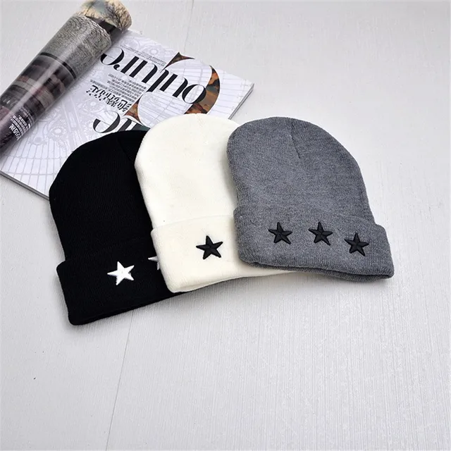 | [해외]남성 겨울 모자 자수 다섯개 스타 여성 브랜드 따뜻한 캐주얼 니트 힙합 Gorro 모자 여성 Skullies 비니 |