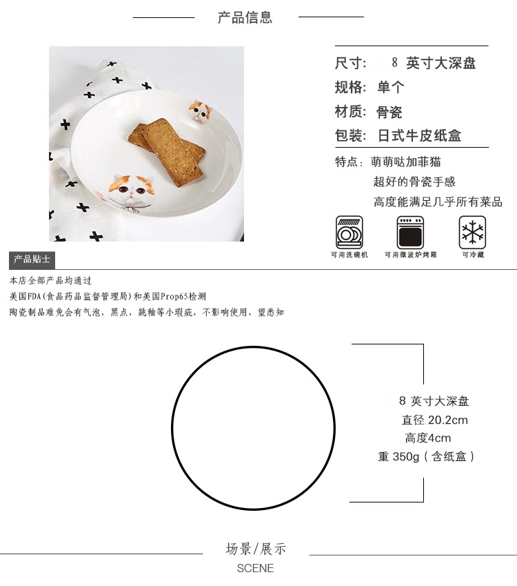 加菲猫系列8英寸大深盘家用骨瓷盘子萌宠陶瓷盖浇饭盘烤盘