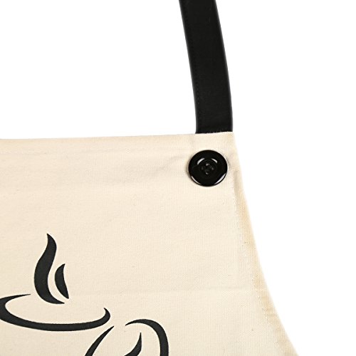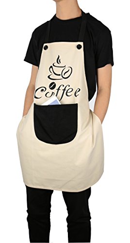 Bib Apron With Pockets-100% Cotton Apron-Premium Quality Unisex-Extra Long Ties-Coffee Cup Pattern-Beige-Designs by Flying Frog