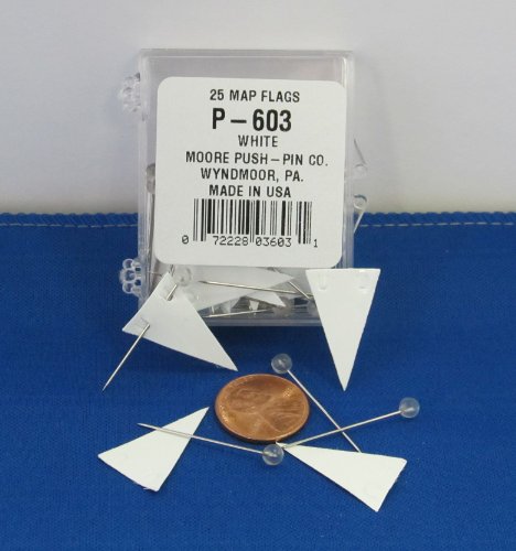 Moore Push-Pin White Pennant Map Flags (P-603)