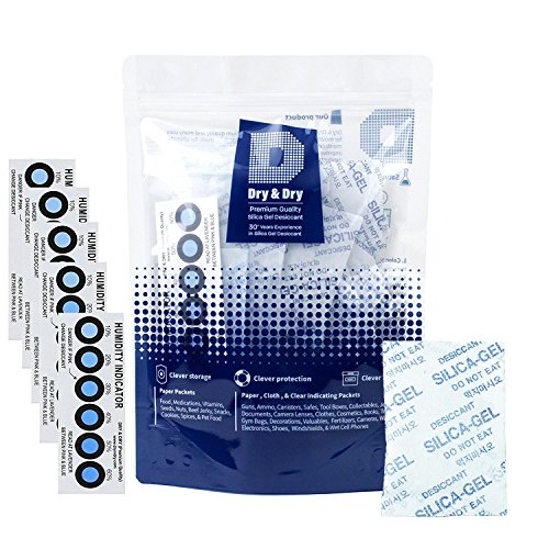 [50 Packs] 5 Gram "Dry & Dry" Premium Pure & Safe Silica Gel Desiccant Packets(Rechargeable) - 5 Pack of Humidity Indicator Cards(Reusable)