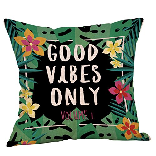 (Lotus.flower)/Bedding Bath/Bedding/DIRECT FROM USA/Throw Pillow Case, Lotus.flower "GOOD VIBES ONLY" Printing Cushion Cover Linen Blend Home Sofa ...