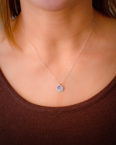 -. Feature : TO CUSTOMIZE: Click on 'Add Gift Options' in your cart, and in the 'gift message' field, please provide the initial, birth month charm, and chain length (16"/18") / DIMENSIONS: Pendant Diameter - 3/8'' (10 mm) Note: This charm is small and dainty. Bigger sizes available too! Chain: 16" (40.6 cm) or 18" (45.6 cm), Larger Discs Available. (See description section for links) / MATERIALS: Sterling Silver chain and pendant. Finest materials to last a lifetime. Choose your own Birth Month Charm from the chart / GIFT FOR: This necklace comes beautifully gift wrapped and ready for gift giving. Best Initial Necklace for new mom, girls, sisters, anniversary and bridesmaids gift. / COMPLETE 30-DAY LOVE IT NO-HASSLE RETURN OR REPLACEMENT GUARANTEE!