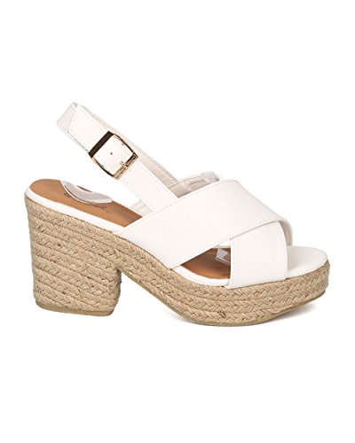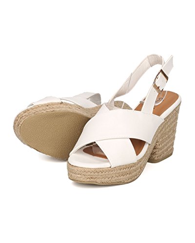 Studio : Qupid Publisher : Qupid Binding : Apparel Product Description These faux suede sandals are made with an open toe, cross bands at vamp and espadrille outsole. Also made with a platform and block heel. Finished with a slingback strap with adjustable buckle closure. 0