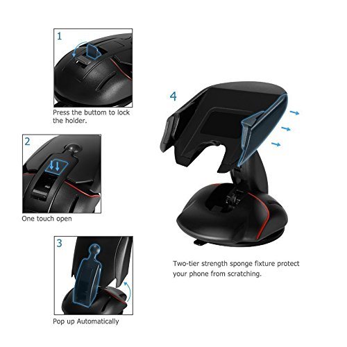 -. Feature : Unique Design - Foldable Car Mount, Easy one touch system locks and releases most of devices just by a pull. / Super sticky gel pad sticks securely to most surfaces, also is easily removable by a Release Button. / Universal compatibility:Fits Almost All devices from size 2"" to 3.7"" Wide,which makes it compatible with the iPhone 6/6s or even phones as big as the iPhone 6 Plus!! (which is 3.09 inches in width) / Firm silicone sucker base with lock catch to prevent devices falling.Strong stick suction cup,can be adhere to car dashboard and windshield. Also a great stand on a desk for watching TV at home / Includes Full 360 Degree Rotation which provides a good view when you drive on the road, while not blocking your sight.- Also includes for a limited time a Lifetime Warranty