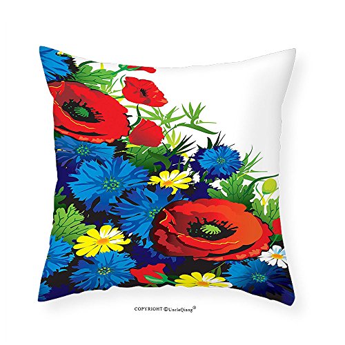 (VROSELV)/Kids' Furniture Room Decor/Room Decor/DIRECT FROM USA/VROSELV Custom Cotton Linen Pillowcase Floral Vibrant Flower Bouquet with Poppies Chamomiles Na...