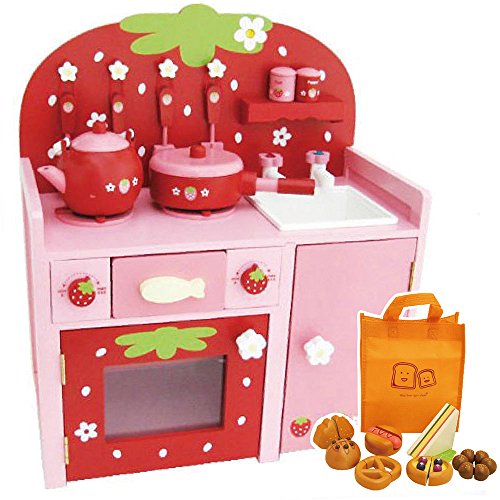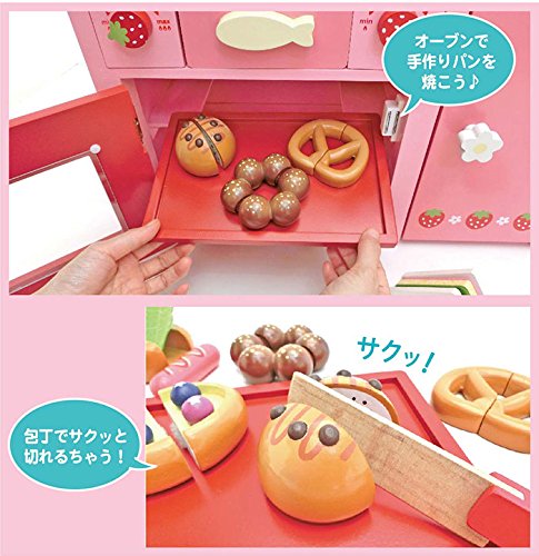 원본상품명: 【2月末までハンバガセット付き】 木のおままごと つぶつぶ赤 グリルキッチン サクッとパンセット 998-09150