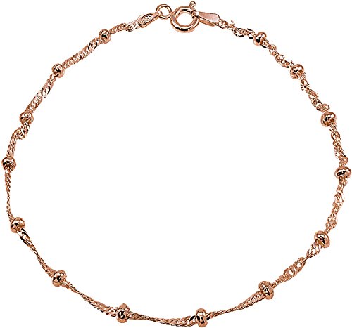 -. Title : Signature 10" Singapore Chain & Bead Anklet One Size Rose tone
