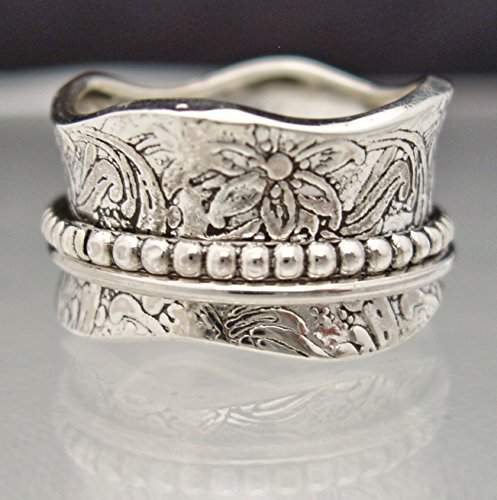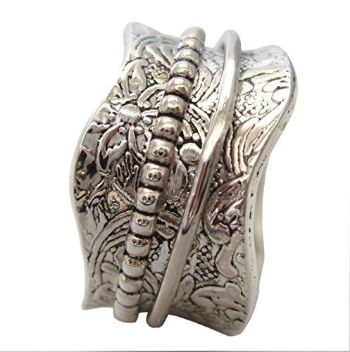 -. Binding : Jewelry -. Brand : Energy Stone -. Department : womens -. Feature : ARCHAIC / Energy Stone Sterling Silver Shank and Spinner Meditation Spinning Ring with Antique Finish Etched Floral and Leaf Pattern / Etched antique finish leaf and floral patterned base ring / Sterling silver base ring and spinners no other metals best for ladies who are sensitive to base metal / 12mm height knuckle to knukle -. Label : Energy Stone -. Manufacturer : Energy Stone -. Model : US17 -. MPN : US17 -. PartNumber : US17 -. ProductGroup : Jewelry -. ProductTypeName : FASHIONRING -. Publisher : Energy Stone -. Studio : Energy Stone -. Title : Energy Stone "ARCHAIC" All Sterling Silver Etched Floral 2 Spinners Meditation Ring (Style US17)