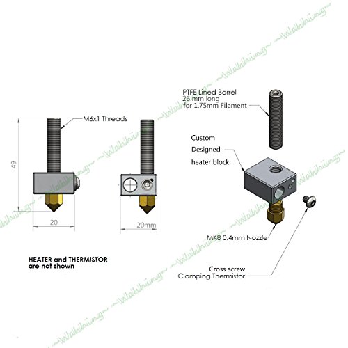 WAHHING Metal DIY Hot End for RepRap 3D Printer 1.75mm Filament, 0.4mm Nozzle, 12V 40W Heater, NTC 3950 Thermistor Hotend