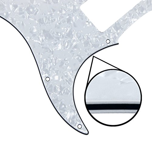 Studio : iknmusic Publisher : iknmusic Product Description Feature: * For American / Mexican Modern Standard FD Strat HSH Style Guitar Parts Replacement.* Pickguard with pure aluminum foil shield on the backside, not the common aluminum-foil paper on the market, better shielding property and anti-interference.* All materials are environmentally friendly, thermostability, no smell. Multi-layer plates are pressed under high temperature and pressures, to make them close integration between each layer, will not appear curly, deformation, or separation of different layers.* With off set screw holes and beveled edge; Excellent product process ensure the edge of the smooth and structured.Two layers of protective films on the front of pickguards, anti-scratch to protect the guitar.Specification:* Style: HSH (humbucker /single/ humbucker coil) style pickguard; 11 screw mounting holes in the side of pickguard.* Material: Made of 4Ply, 3Ply PVC and 1Ply Pearl Celluloid Plate.* Color: Pearl White* With protective film on the surface, while using please split it off.* Note:Item's color might be different from the picture because of the aberration. Please allow 1-3mm error due to manual measurement.Package Includes:1 x HSH guitar pickguard25 x pickguard screws 0