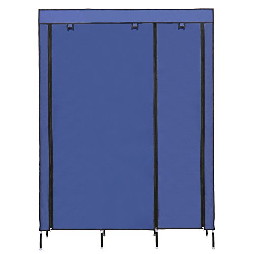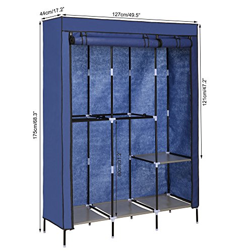 Dorfin Portable Clothes Closet Non-woven Fabric Wardrobe Double Rod Storage Organizer 49.5" x 17.2" x 68.3" (BLUE)