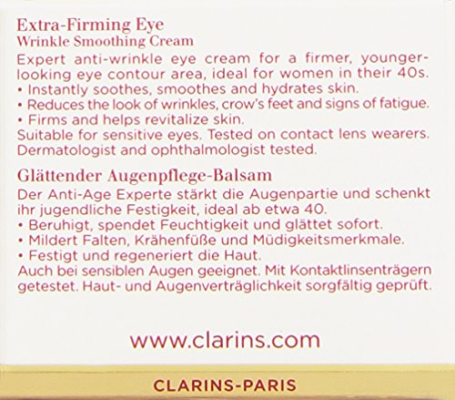 Extra-firming eye wrinkle smoothing cream was launched by the design house of Clarins 0.5 ounce cream It is recommended for casual wear Brand : Clarins Item model num : CLA94432 MPN(PartNumber) : U-SC-2598 EAN : 3380811088105