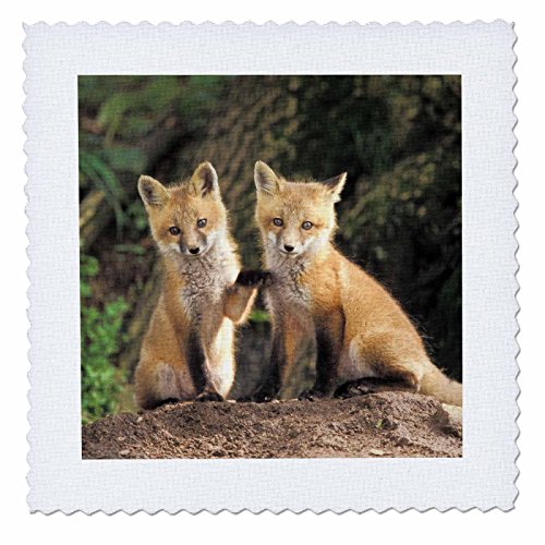 3dRose qs_83613_8 R Ed Fox Pup in Front of Den NA02 AJE0310 Adam Jones Quilt Square, 20 by 20-Inch