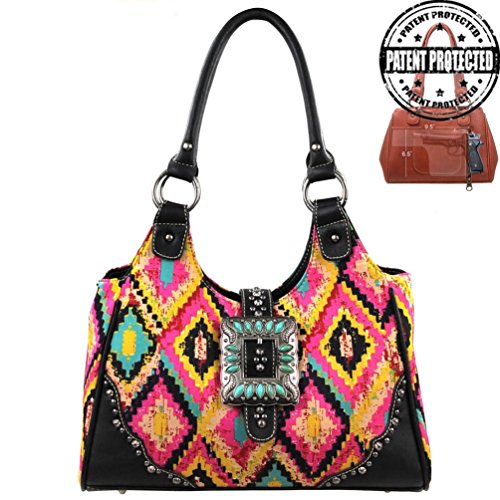 Product Description Montana West Concealed Handgun Aztec Messenger Handbag Patent Protected! US Patent Pending-Patent 1,558,2043 Application Number 1,3867998. Title of Invention: Concealed handgun holster 35 U.S.C 292 Handgun Not Included 0