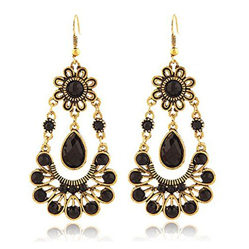 A&C Bohemia Raindrop Earrings for Women, Fashion Dangle for Girl. (Black)