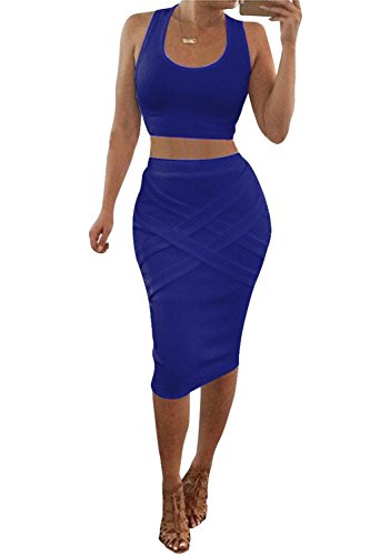 Voguegirl Womens Crop Top Midi Skirt Outfit Two Piece Bodycon Bandage Dress