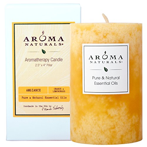 Aroma Naturals Essential Oil Orange and Lemongrass Scented Pillar Candle, Ambiance, 2.5 inch x 4 inch