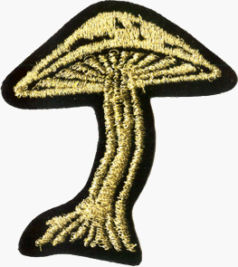 (Square Deal Recordings Supplies)/Accessories/Scarves/DIRECT FROM USA/Mushroom - Gold 'Shroom on Black - Embroidered Iron On or Sew On Patch