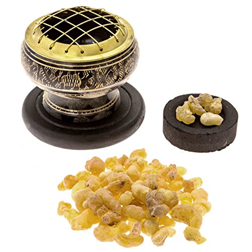 Premium Frankincense Burning Kit (with Tibetan Incense Burner or Brass Screen Burner) (Brass Burner)