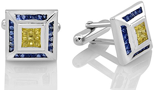 -. Title : Men's Sterling Silver .925 Cufflinks with Canary Yellow and Azure Blue P.R.Incess-Cut Cubic Zirconia Stones, Platinum Plated, 18 mm Square. By Sterling Manufacturers