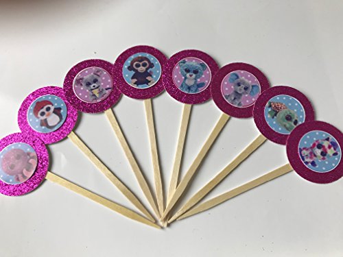 8 Pink Animal Cupcake Toppers Stella Boos Puppy Birthday Party Supplies
