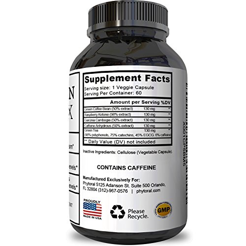 100% Pure Garcinia Cambogia Extract Nutritional Weight Loss Supplements with Green Coffee Bean Chlorogenic Acid Raspberry Ketones Natural Appetite...