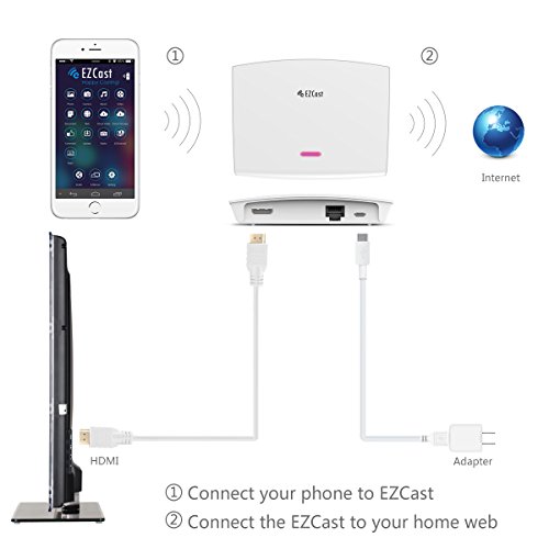 2.4GHz EZCast LAN Box offers you an easy way to enjoy Netflix, Amazon Instant Video, Hulu Plus, low-cost movie rentals, live and on-demand sports, music, photos, games, and more.
