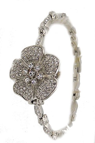 -. Title : Diamond Studded Flower Bracelet Ladies Silver Flower Wrist Watch Women's watch