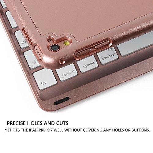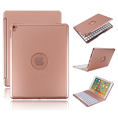 iPad Pro 9.7 Keyboard Cover, KVAGO Stylish 7 Colors Back light Keyboard Wireless Bluetooth Keypad and Hard Shell Protective Case Combo for Apple iPad Pro 9.7 inch (Rose Gold)