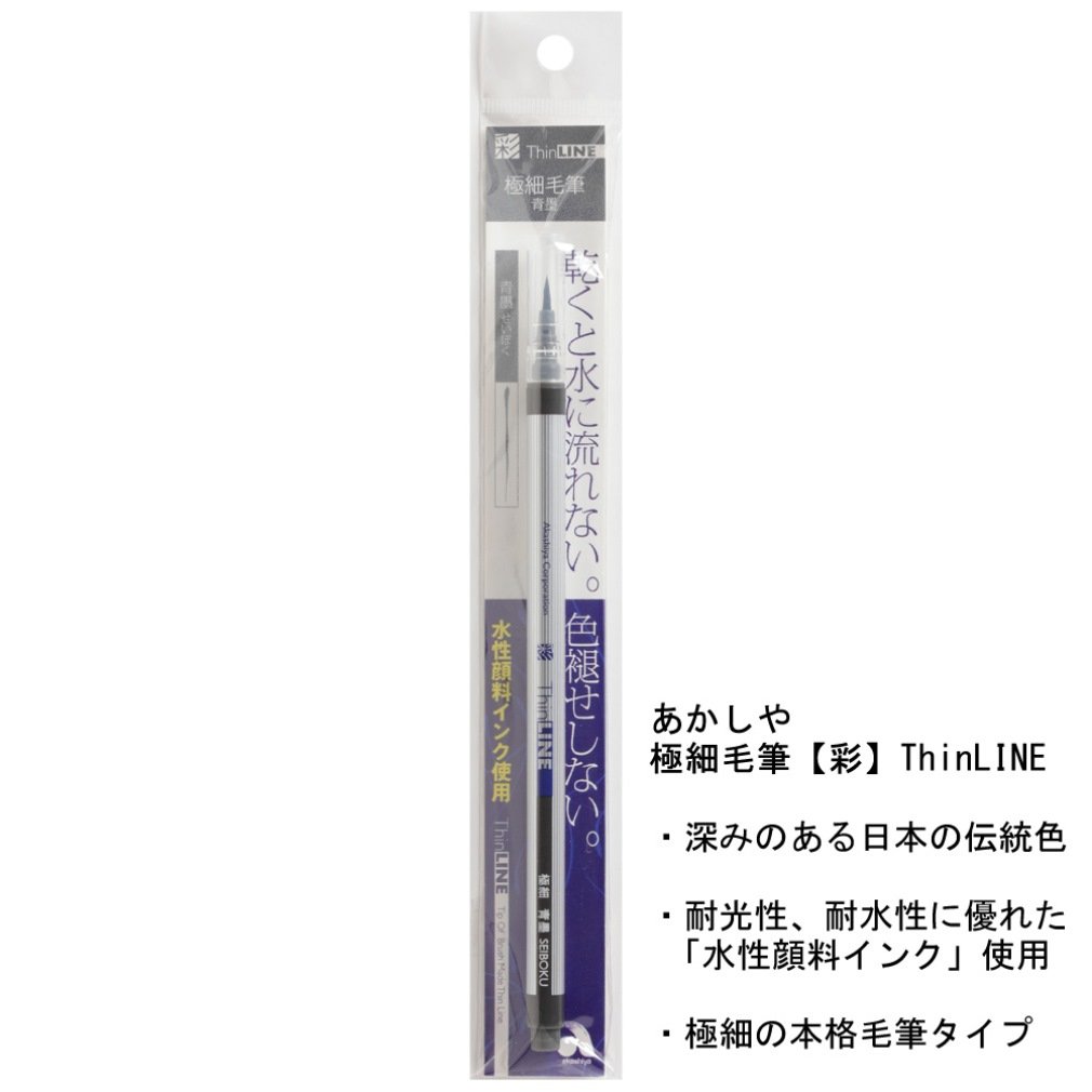 Akashiya Fude Brush Pen Sai Thin Line Charcoal Blue