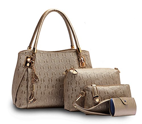 -. Brand : TIBES -. Department : womens -. Feature : High quality synthetic leather material. / Size: large purse 31*24*15cm, handle 20cm. Shoulder bag 24*17*7cm, wallet purse 17*12cm. / All the bags of the hardware is gold. / Come with 4pcs set, fashionable and affordable. / Top zipper closure, fabric lining. -. Model : 111shoutibao124 -. ProductGroup : Shoes -. ProductTypeName : HANDBAG -. Size : Medium -. Title : Tibes Stylish Faux Leather Top Handle Purse 4pcs set Satchel Handbag