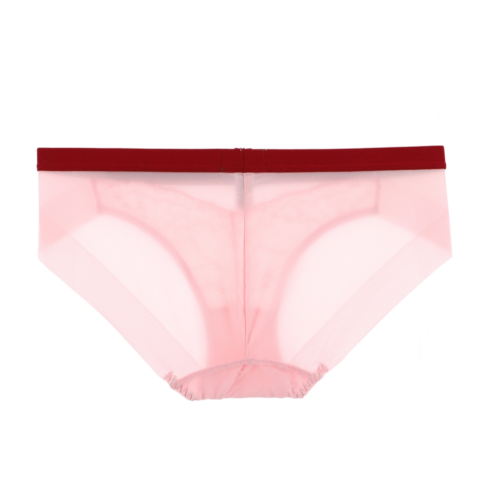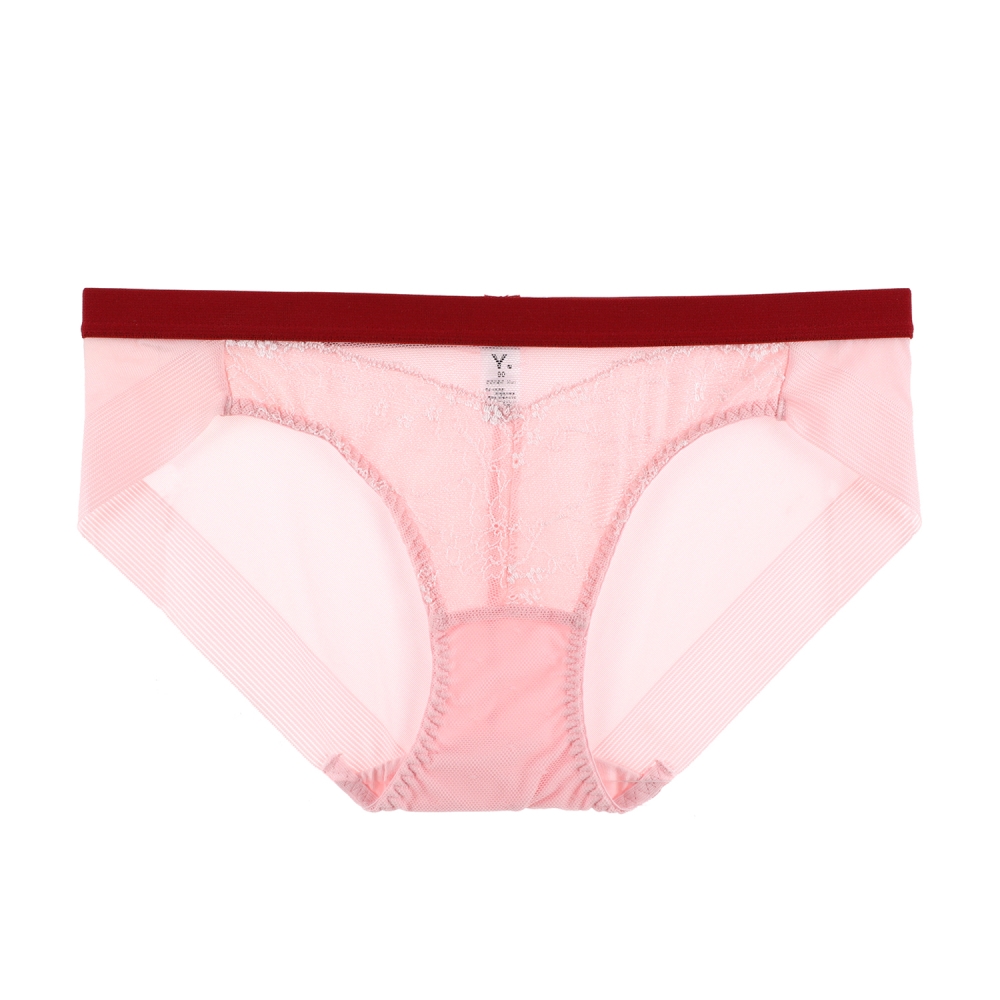 화사한 핑크 컬러와 버건디컬러 매치로 톡톡튀는 개성있는 컬러감제공. 앞판 레이스와 망 매치로 여성스러운느낌과 허리 20mm아웃밴드로 캐쥬얼한 느낌도 함께 느껴지는 유니섹스적인 제품 .